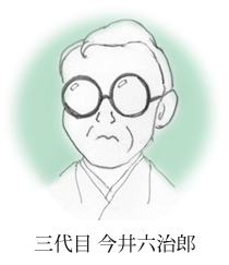 大正時代に入り、三代目となる今井六治郎が、滋賀県高島郡剣熊村(現 高島市野口)から京都にやって来て、糸商に加わります。今井六治郎は、糸の商いを愛し、「糸屋の六さん」と呼ばれて親しまれた人でした。
